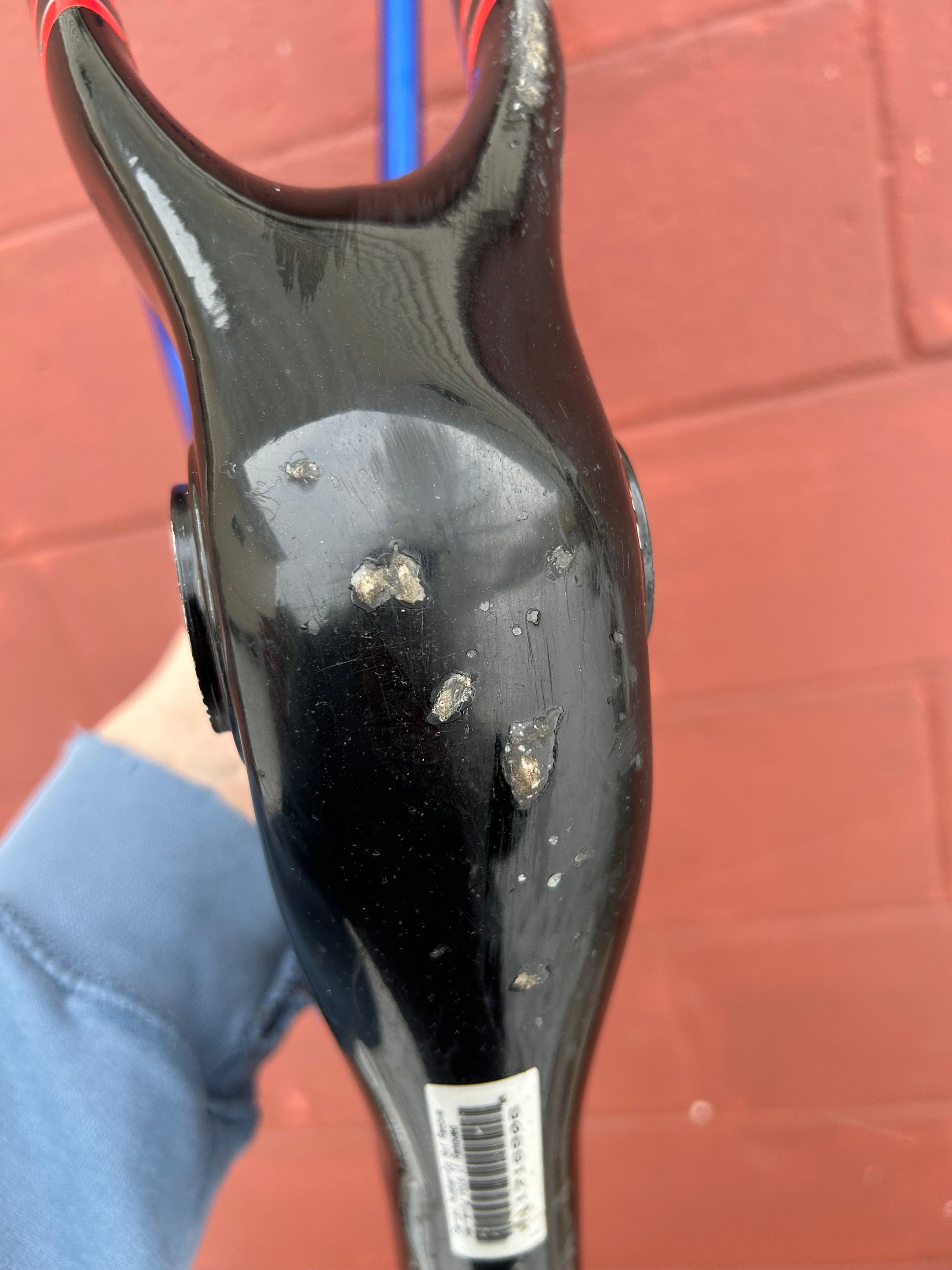 Used, scuffs, scratches and paint chips through the paint to the carbon. Chainstay has damage from chain suck but on the side it is just through the paint as they had an extra frame protector glued on. The bottom has more damage but trek made that portion of the chainstay aluminum so it is just cosmetic. Chips on bottom of bb shell. No signs of cracks or soft spots.