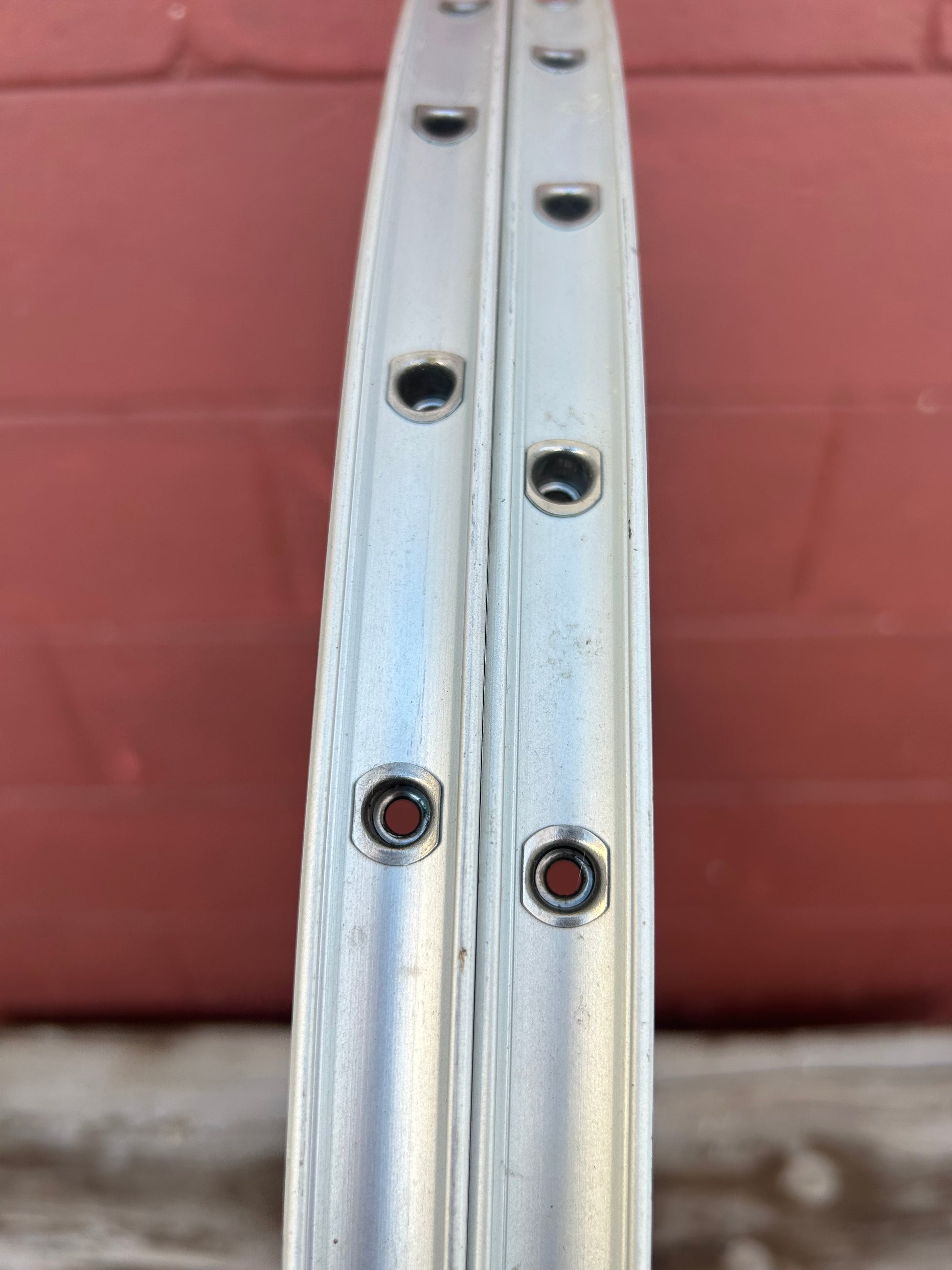 Used, rims have been lace and have scuffs and scratches from storage, brake tracks look unused.