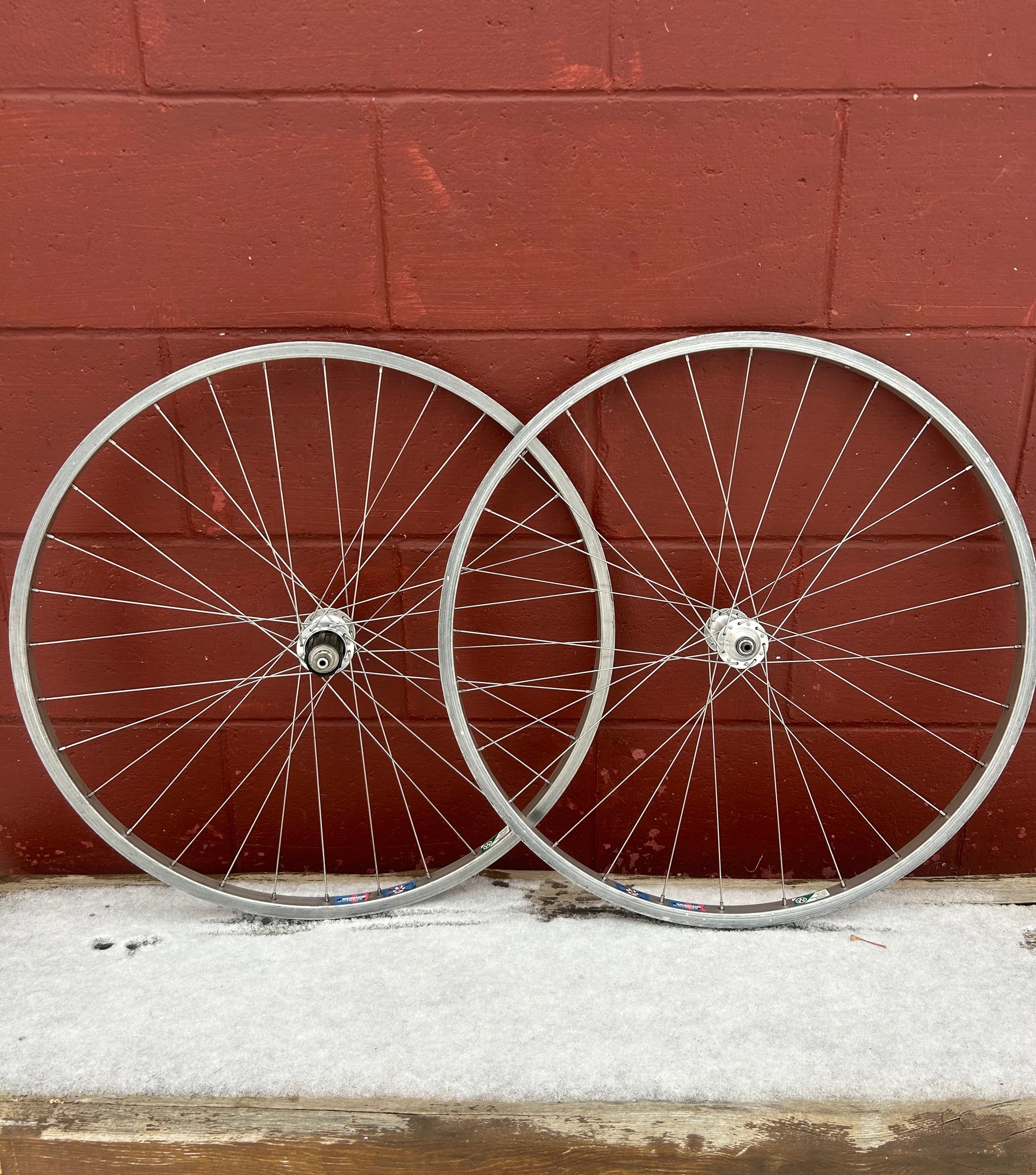 Used, scuffs and scratches from use. Brake tracks are still in good shape. Hubs are smooth. Wheels are true and ready to ride.